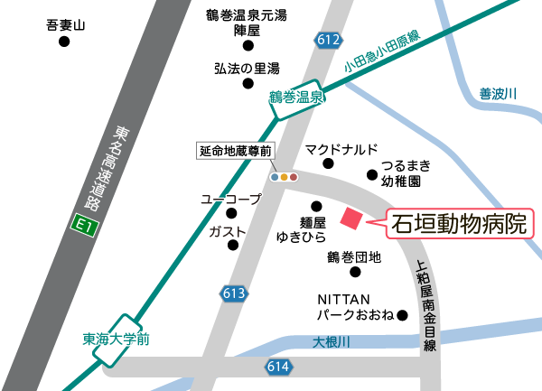 - 電車の場合:小田急線「鶴巻温泉駅」から徒歩8分