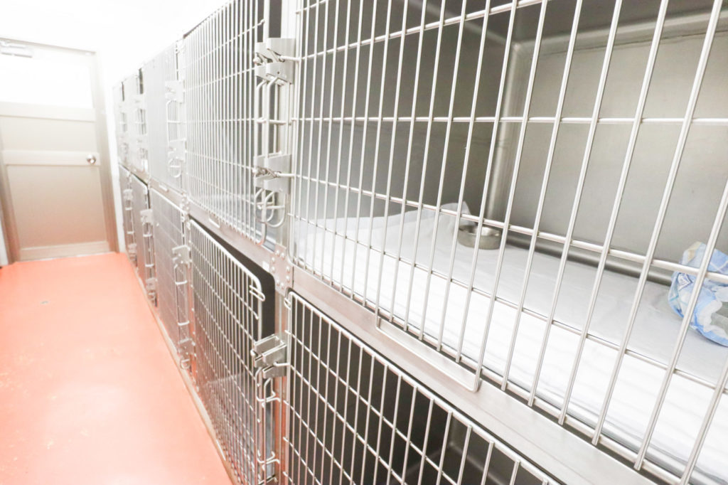 空調と床暖房完備の入院室です。犬のための10部屋がある第1入院室と、猫やその他小動物のための8部屋がある第2入院室があります。2つの入院室に分けることでストレスの軽減に努めています。このほかに2畳相当の広さがある大型犬用の部屋も2つ用意しています。