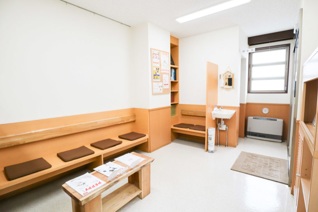 来院の確認やお薬・フードの受け渡しと会計を行う受付カウンターと、診察や検査結果をお待ちいただくための待合室です。