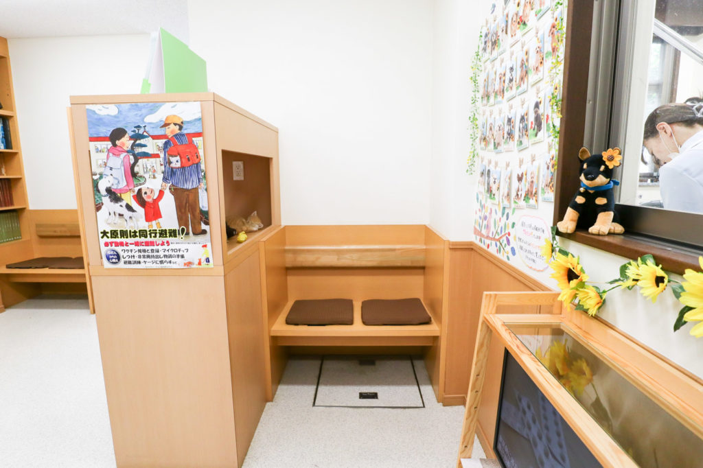 ほかの動物が苦手な子たちのために椅子を3区画に分けて距離を取れるようにしています。