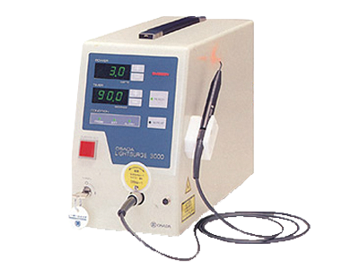 高出力な半導体レーザー装置であり、接触照射(ハードレーザー用)、非接触照射(ソフトレーザー用)の2通り使用できます。その特徴を活かして、他のレーザー機器より広い範囲の症例に使用できます。