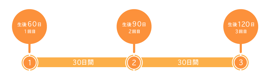 - 生後2ヶ月齢以上になっている場合は1カ月間隔で2回接種します。